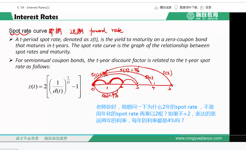 2年的即期利率如果按年付息,是指这两年的每一年都按此利率折现,如果按半年付息,则要除以2