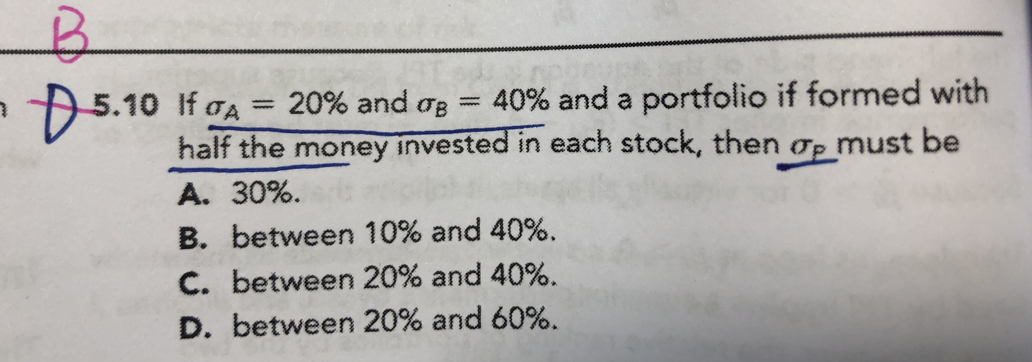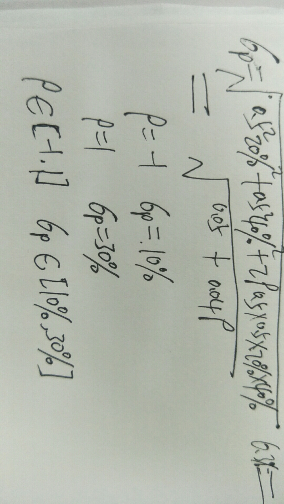 同学你好,这里考察的是组合标准差的计算公式,计算过程参考图片