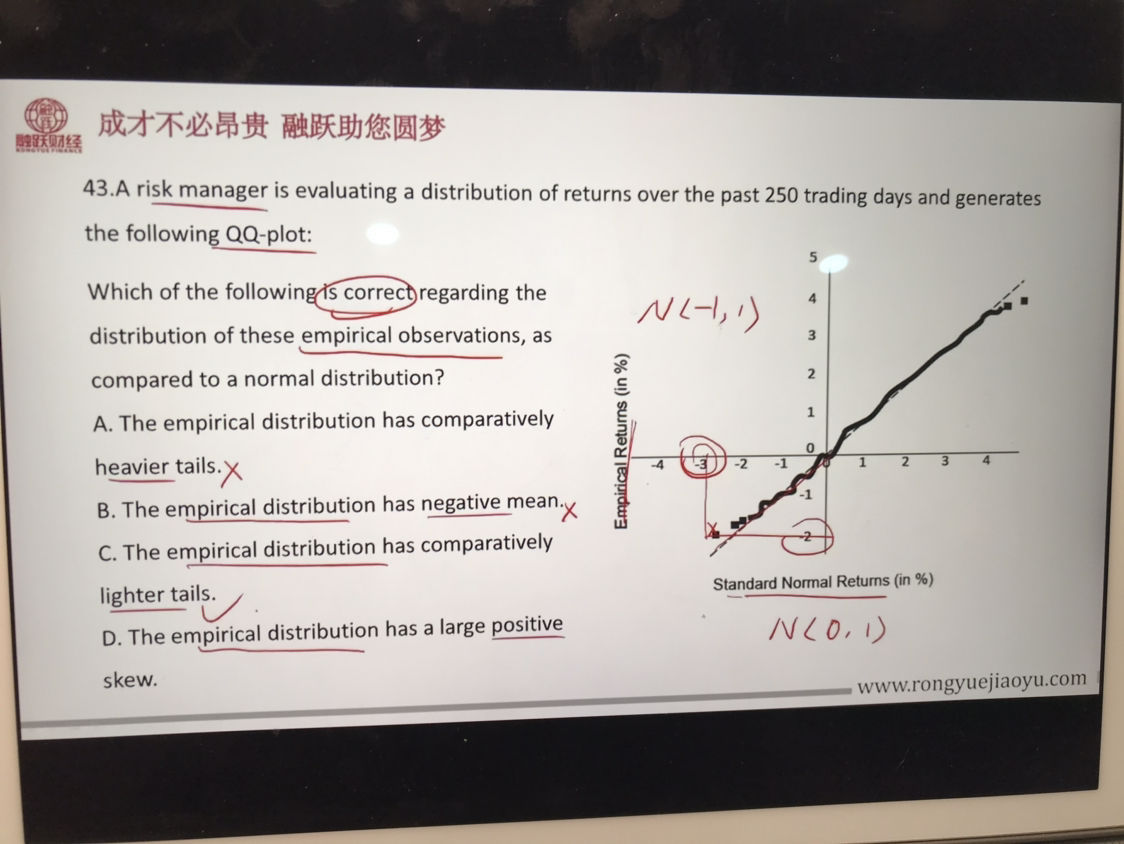 同学,这个题是选C的,标准正态收益是横轴,实际的是纵轴