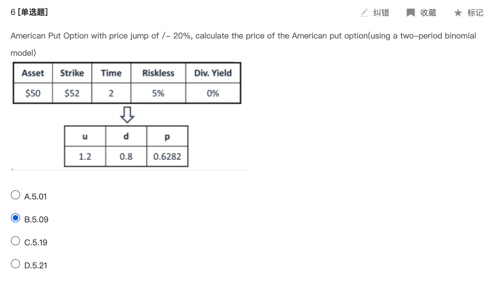 同学你好,就是美式看跌期权二叉树计算,课上都有讲的。