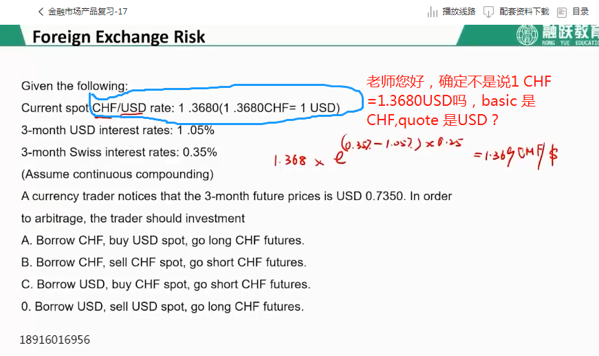 老师您好,我想问一下 ,如果没有括号里的那个说明,可以理解成,1chf=1.368usd嘛? 我就单独问一下 ,我这样理解没错吧