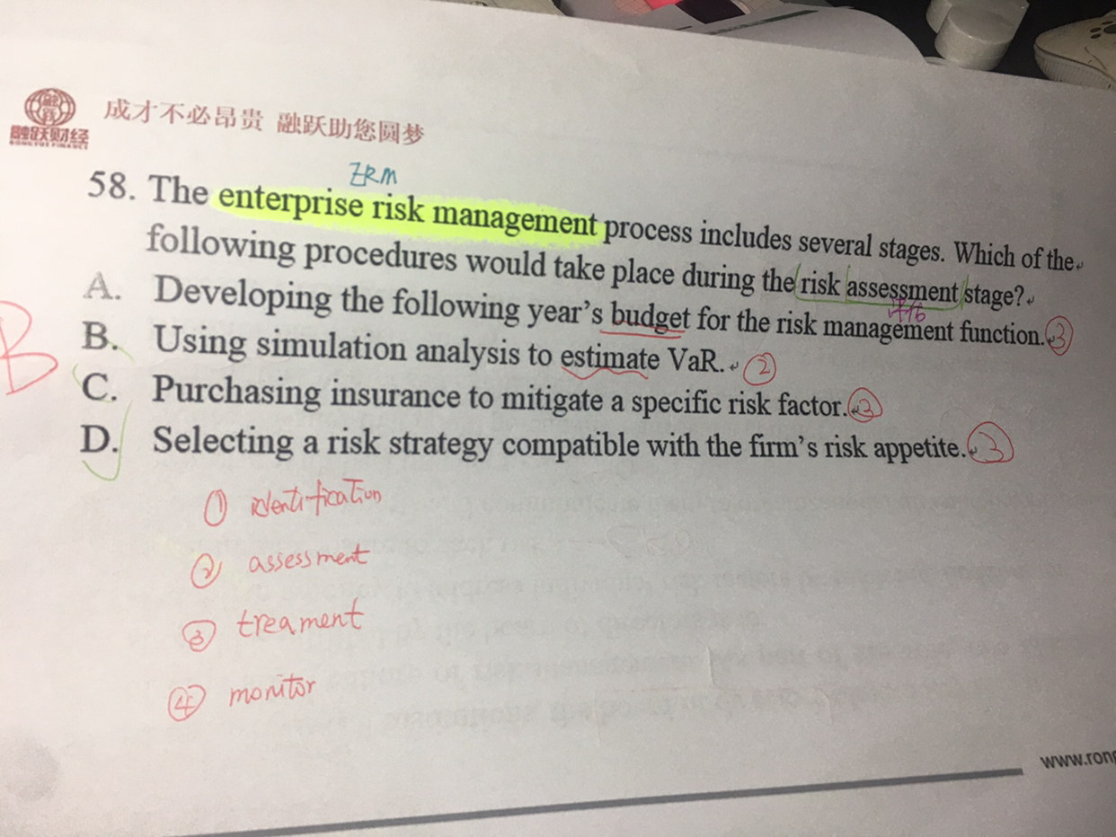全面风险管理与风险管理的过程一致:识别、分析、评估、管理,具体讲解可以再看一下金融风险管理基础课The Building Blocks of Risk Management的第二小节The Risk Management Process