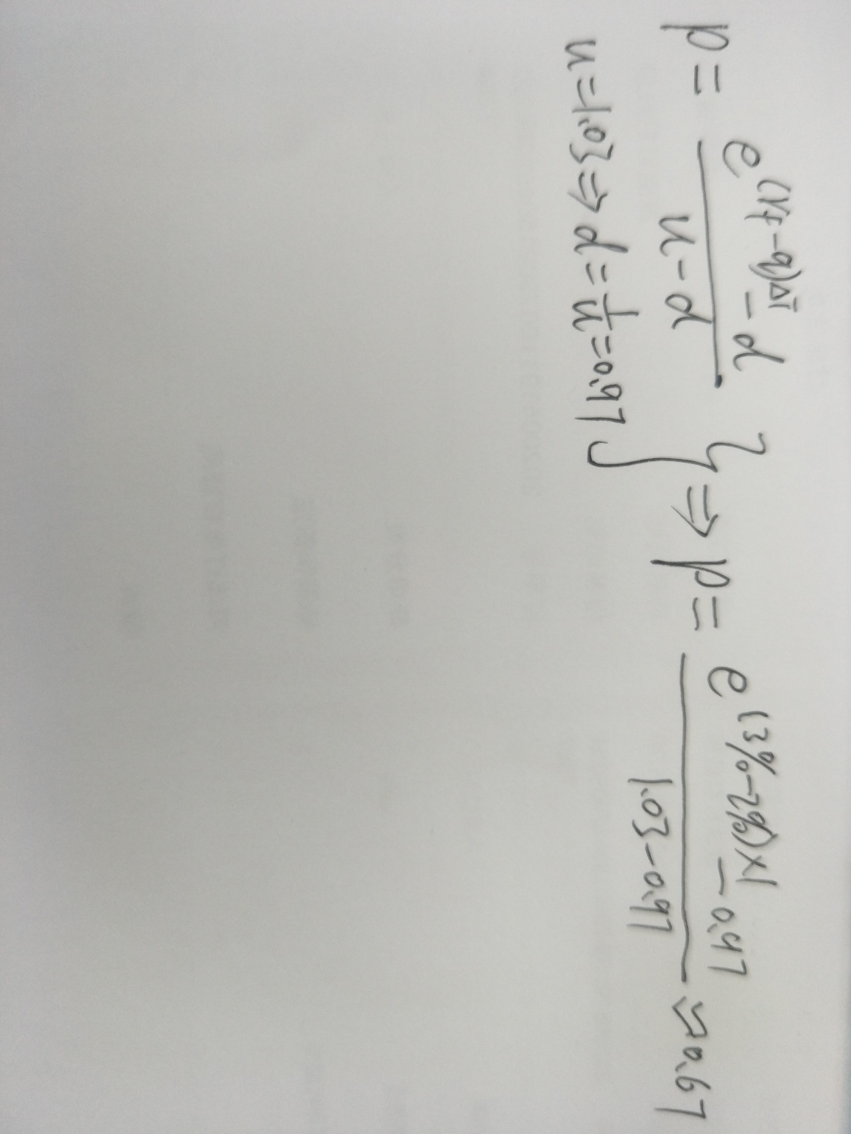 同学你好,这道题考察的是考虑股票分红时的期权上涨概率的计算,带入公式即可,计算过程参考图片