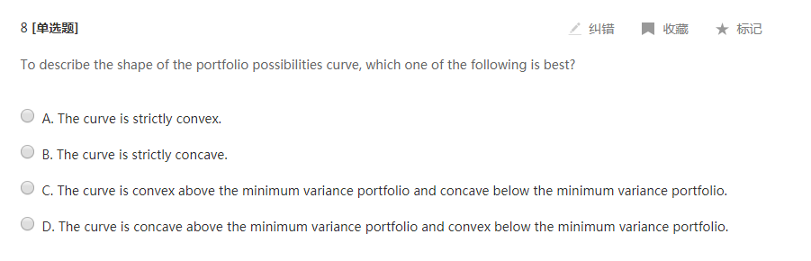 同学,这个题是选D的,最小方差组合在最左边,上面是concave,下面是convex