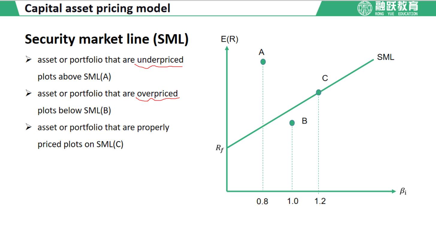 同学你好,在SML坐标图中,纵轴代表组合的预期收益率,在SML线上方说明在同等的系统性风险的情况下组合的预期收益率较高,而对资产组合进行估值时一般用绝对估值法(即现金流折现求和),此时纵坐标的预期收益率可以看做是折现率,预期收益率越高,也就相当于折现率越高,对应的折现求和值就越低,资产组合价值相应就低估。