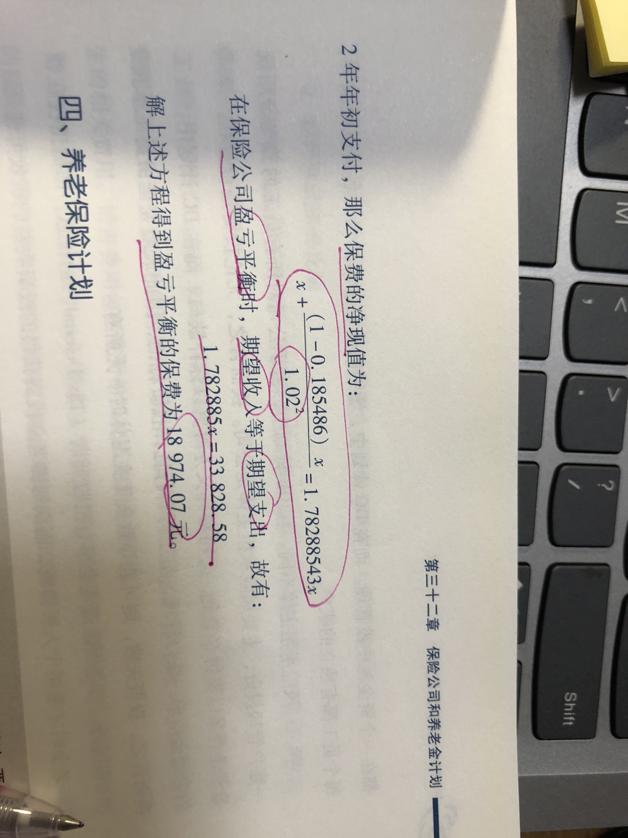 同学你好,这里的1.02是折现的意思,因为一般出现都是假定是年中出险,缴费在年初缴费,所以按每半年进行折现一次即4%/2=2%,第一年出险对应的折现率就是1.02,第二年年中出险就是(1+2%)^2,计算盈亏平衡保费的时候,恒等式就是缴费的现值之和等于赔付的现值之和,FRM之家公众号里面有一篇文章:从温岭油罐车事故看保险公司怎么造保险中有介绍该知识点,可以看下。