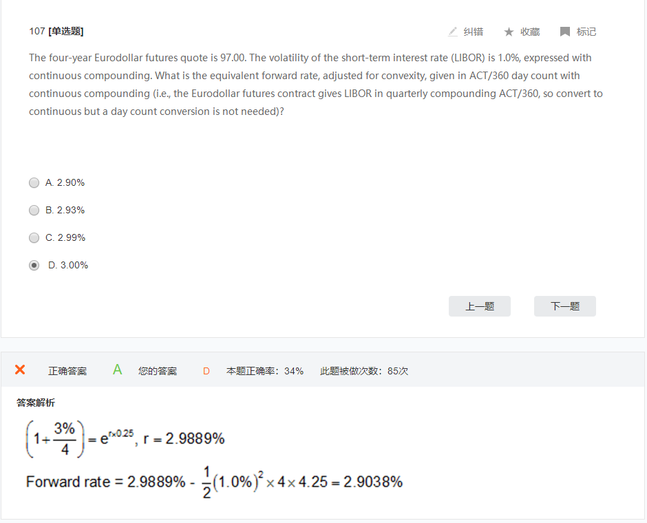 同学,这道题考察了欧洲美元期货的报价方式(价格与利率之间的关系),考察了一般复利和连续复利之间的转换,考察了convexity adjustment。 你要把你不理解的地方指出来,我才好针对性的回答。