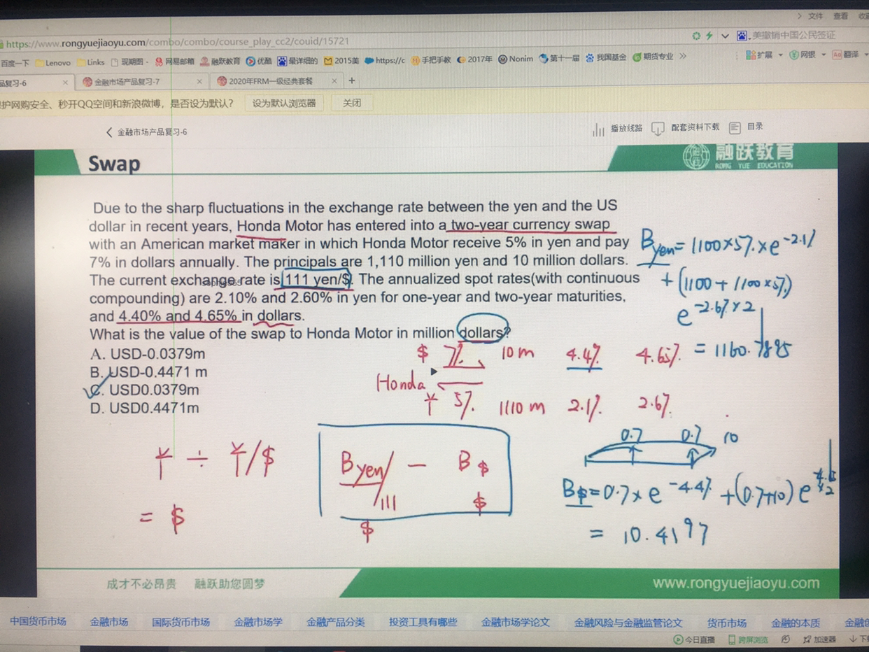 t同学你好,根据题意收日元付美元得出的结果就是C选项。