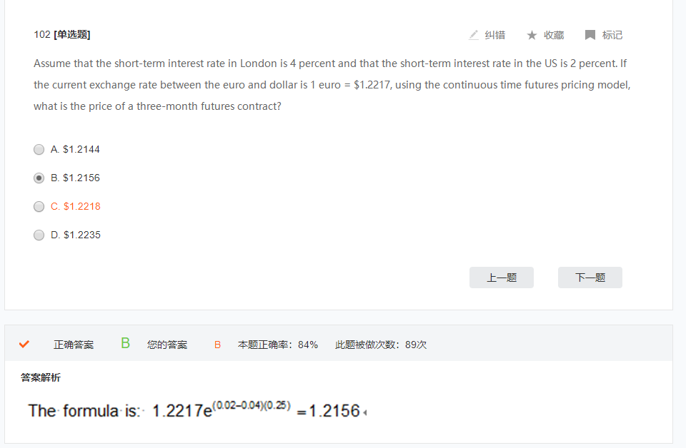 1 euro=1.2217usd,那么就是1.2217usd能买1单位的euro(将euro看做货物,它的利率看做是便利性收益),然后套用投资资产嫩够带来便利性收益的公式