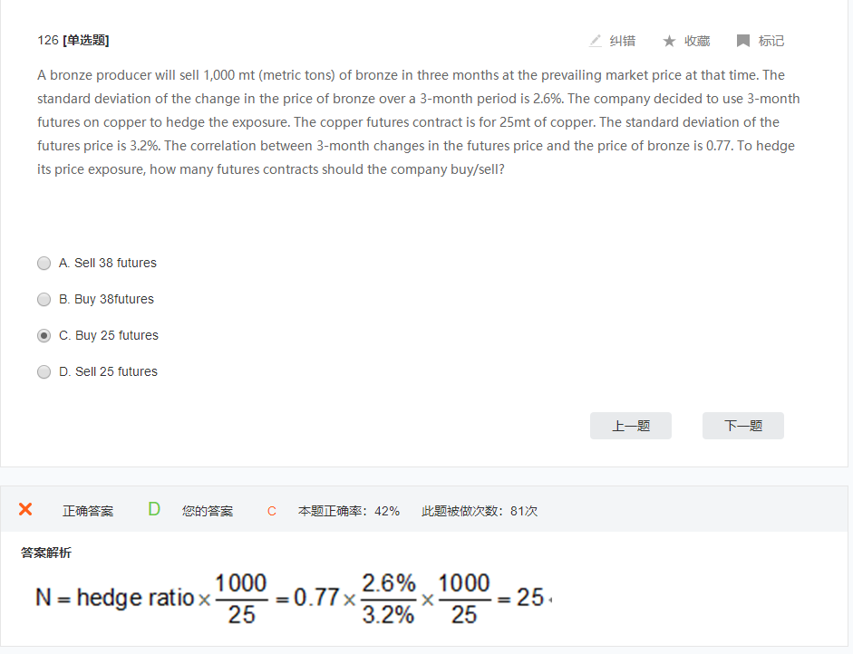 本质上看投资者担心的是什么,如果投资者担心下跌,那么就要从下跌中赚钱,如果投资者担心上涨,那么就要从上涨中赚钱。 比如说题干中说要卖出一个资产,那他担心的就是价格下跌,那就要从下跌赚钱,所以选择D。我看你选的C,如果buy的话,多头在下跌中是会亏钱的