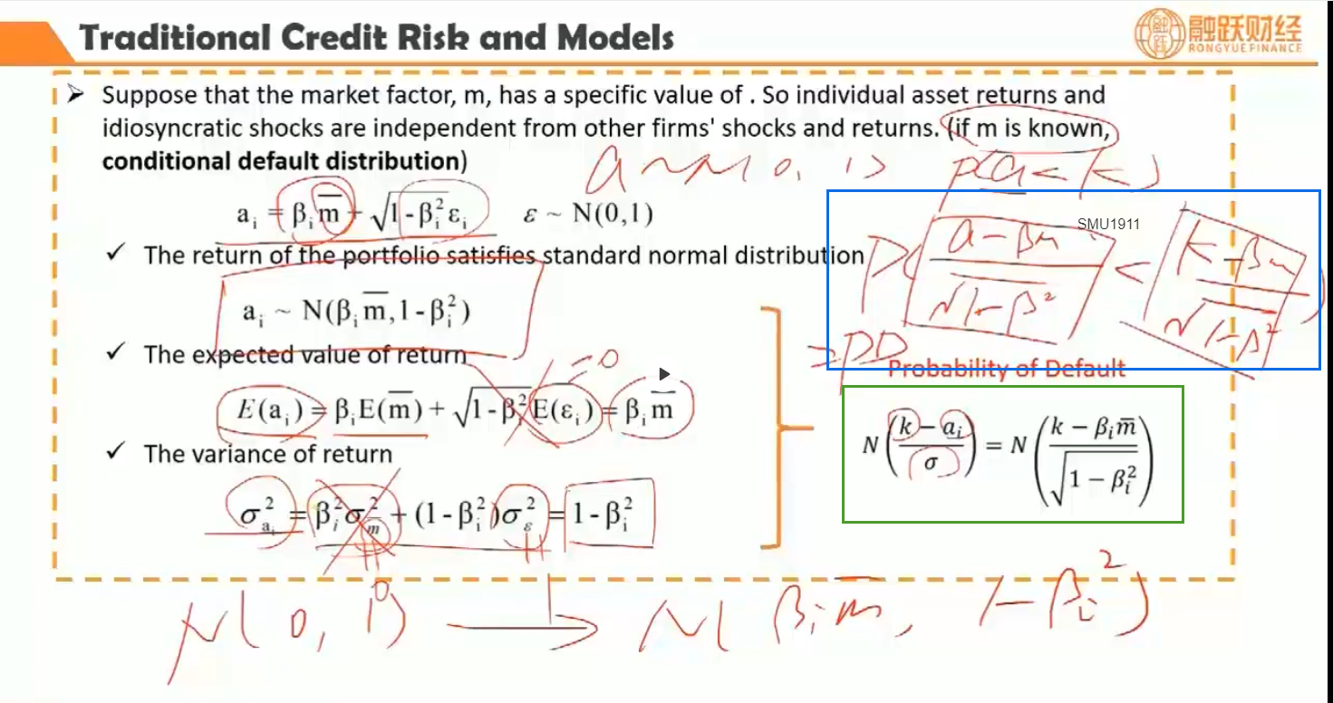 老师我还想再确定一下,绿框的公式是在市场因素m不知道的情况下来算,而在m知道的情况下就直接是服从正态分布了是吧?