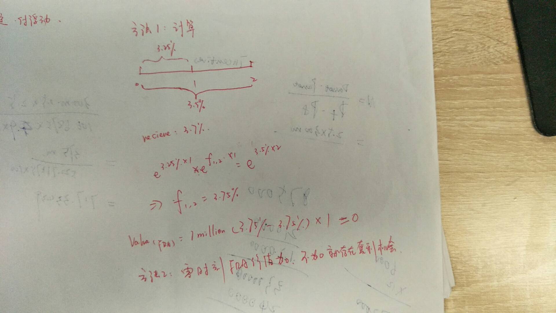 首先你要理解FRA是提前锁定利率,如果说现在约定1年以后,1年到2年的远期利率为3%,一年以后实际利率为为5%,那么你作为这个FRA的多头方(Borrower)就是亏损的,然后再回到这个题目看下图参考解析