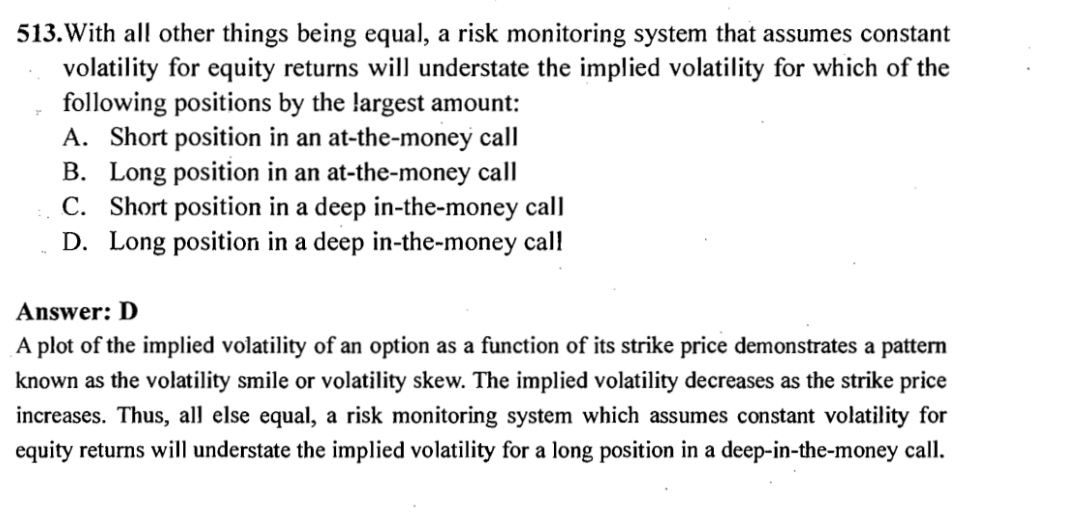 同学,此题不是考察希腊字母的定义,而是波动率微笑,建议你再去看一下基础课程哈
