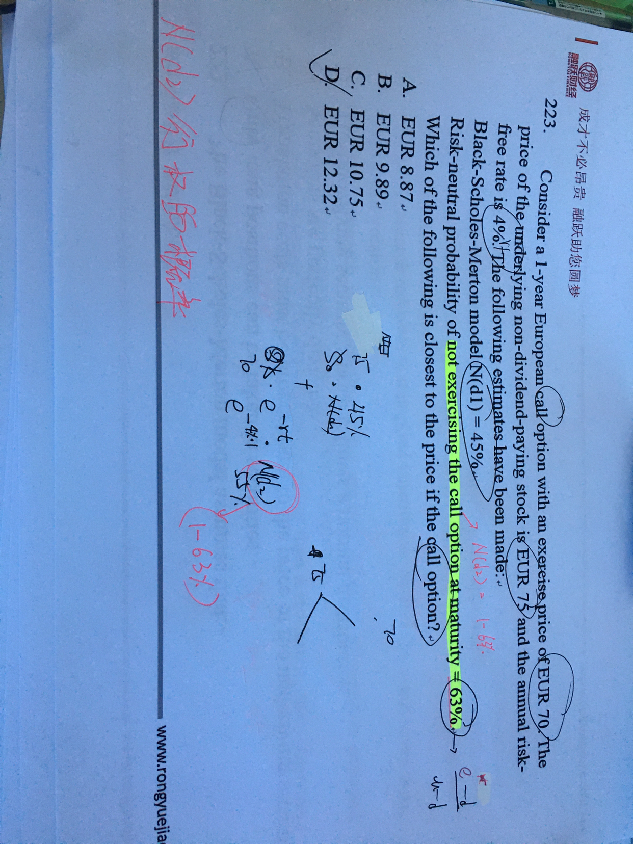 同学,N(d1)与N(d2)没关系的哈