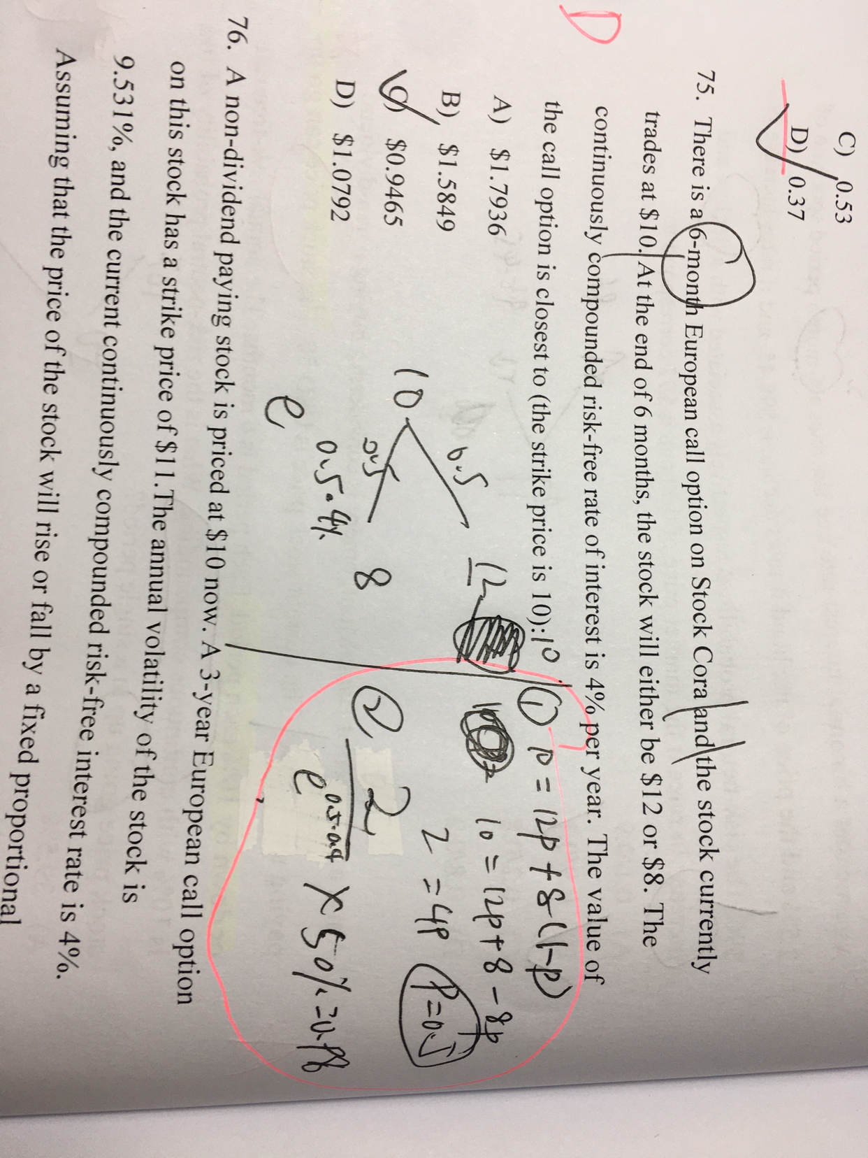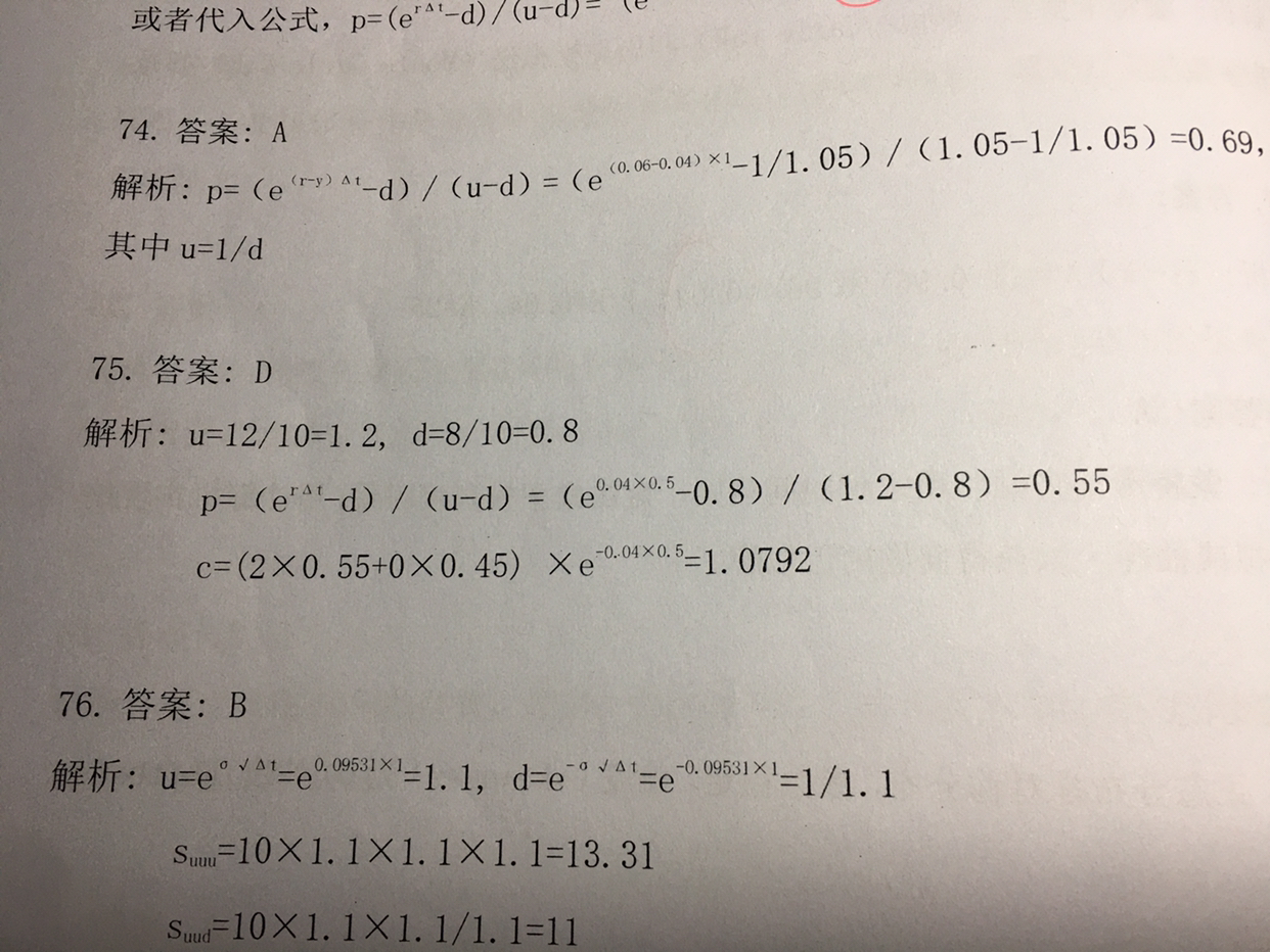 同学你好,答案里的计算上涨概率基于风险中性定价的结果,在用二叉树计算期权的价格时是要用到这个公式的,记住就好,你算的不是基于风险中性定价。