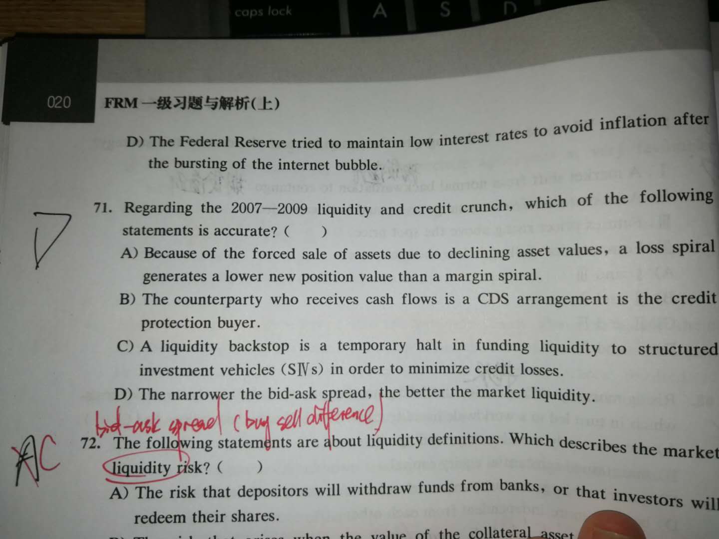 同学,A选项:相较于损失螺旋效应,保证金螺旋使资产整体规模下降得更严重,可用于融资的资金也大幅减少,进一步放大了损失螺旋的效应。B选项:在CDS中定期收到现金流的是信用保护卖方。C选项:流动性支持对于商业银行来说就是给他们提供资金,缓解他们的周转问题,而不是暂时停止向结构性投资工具(SIV)提供流动性资金