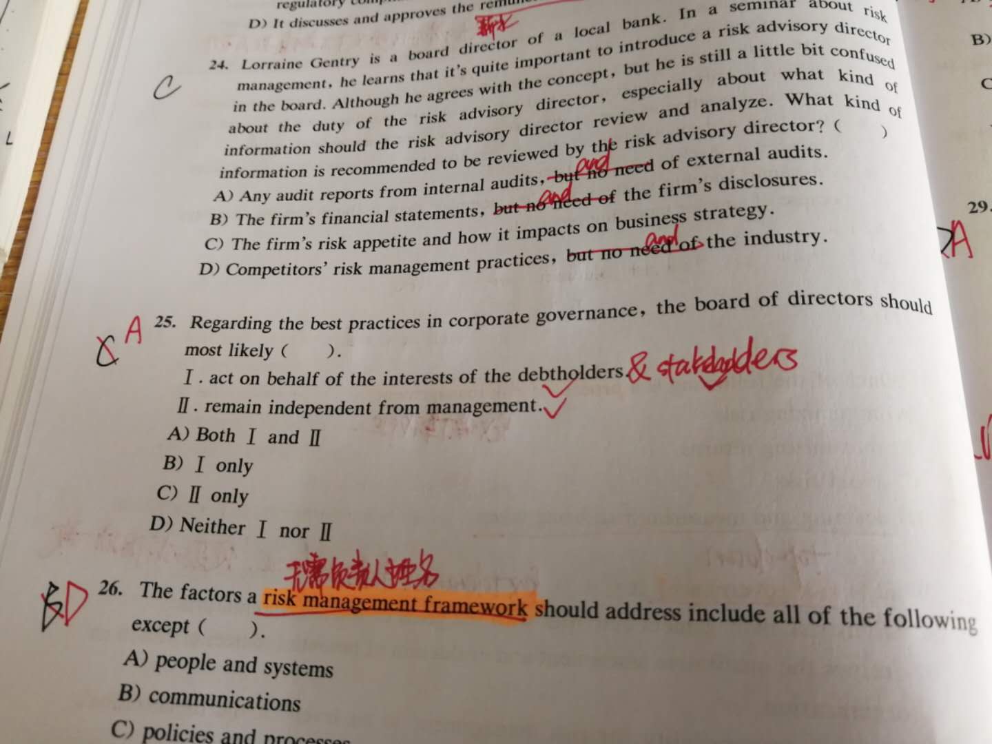 同学你好,董事会是代表股东和债权人的利益。第一个说法说的没错,如果改成只是代表债权人的利益那就错了。风险管理应该独立于利益相关者(包括股东和债权人)。