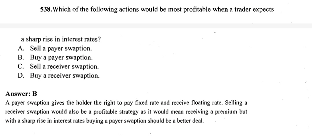 payer swaption支固定收浮动,在利率剧烈上升时,获利最大