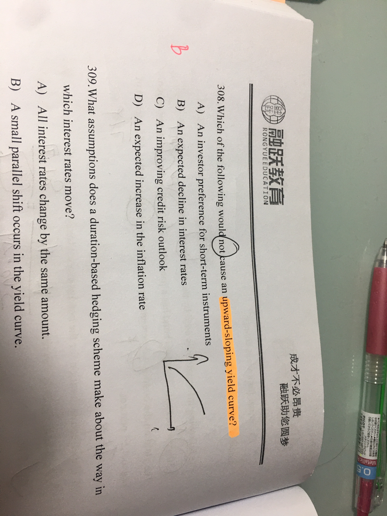 改善信贷条件降低违约率,利率期限结构更平滑,而D选项更明显是不能表示upward的