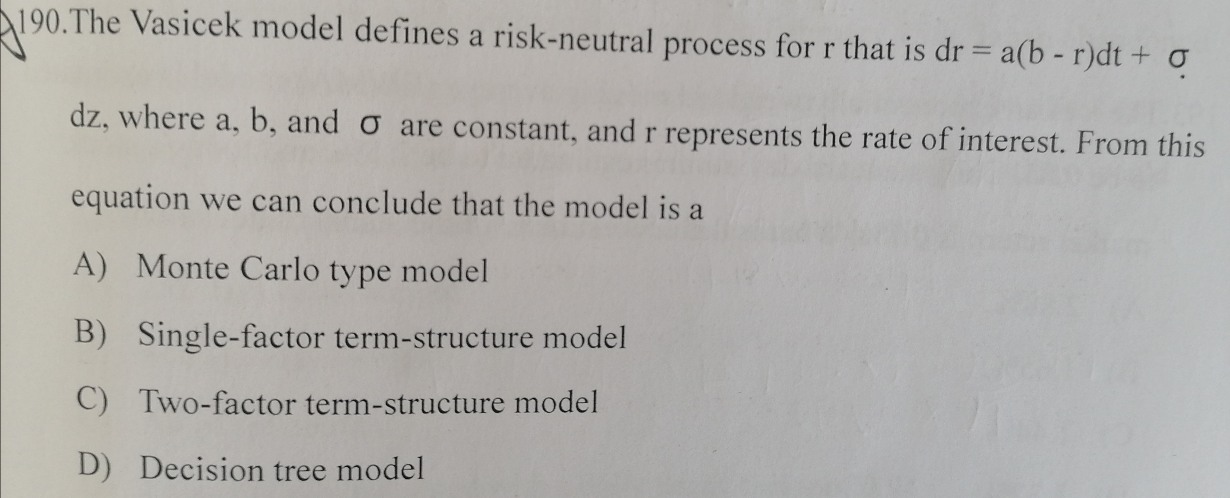 区分单因素和双因素期限结构模型看变量个数,在vasicek模型中,变量只有一个dt