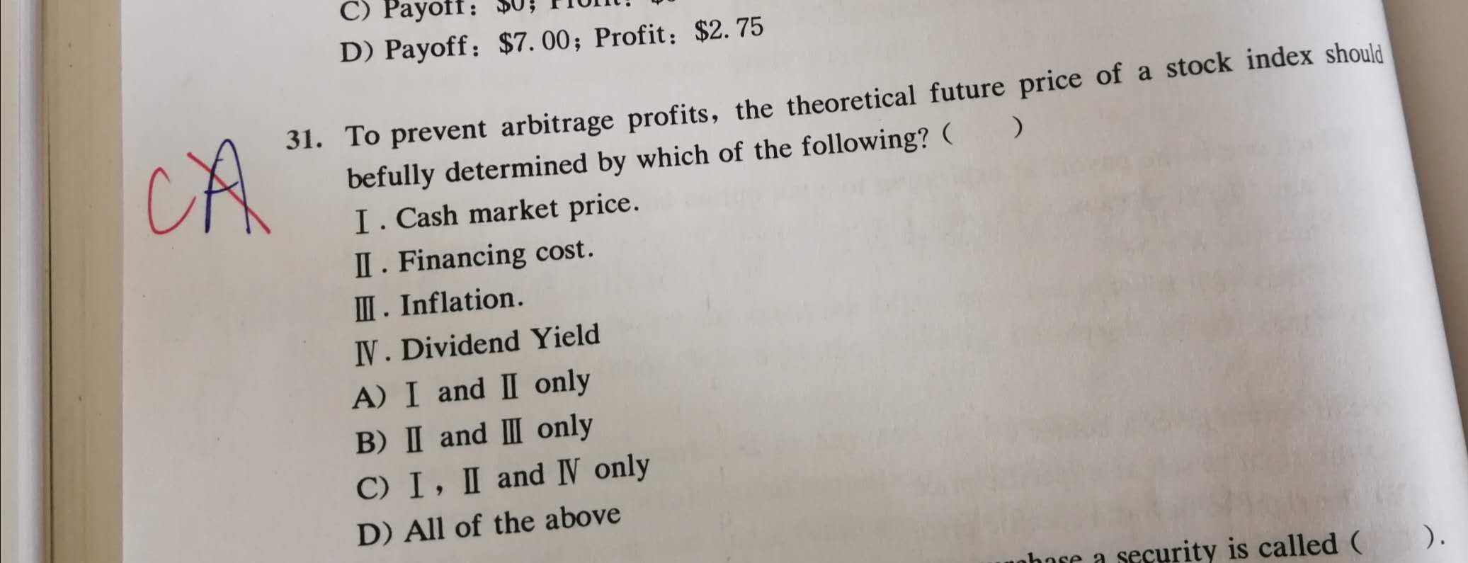 同学你好,第1个的意思是现货市场价格S,第2个说的是融资成本C,第四个说的是股息率D。S和C、D都是影响期权价格的因素,标的资产和成本跟期权价格正相关,收益跟期权价格负相关。期权定价影响因素章节有讲。