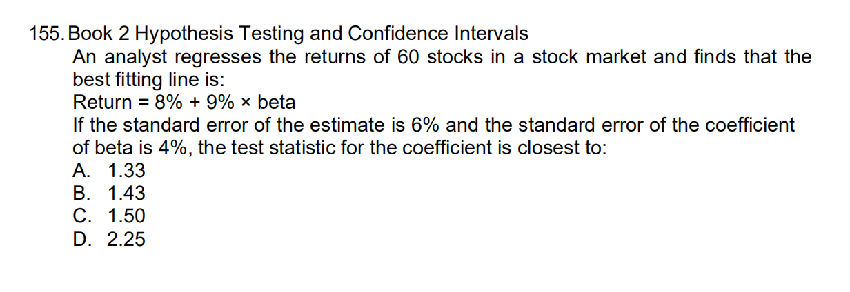 同学你好,这道题就是让求回归系数的t检验统计量=9%/4%=2.25