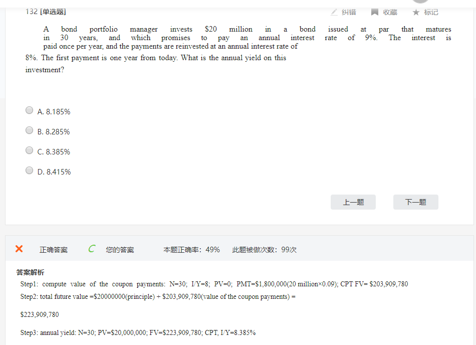 同学,这个题目主要是计算ytm,计算出pv和fv,然后使用金融计算器代入即可
