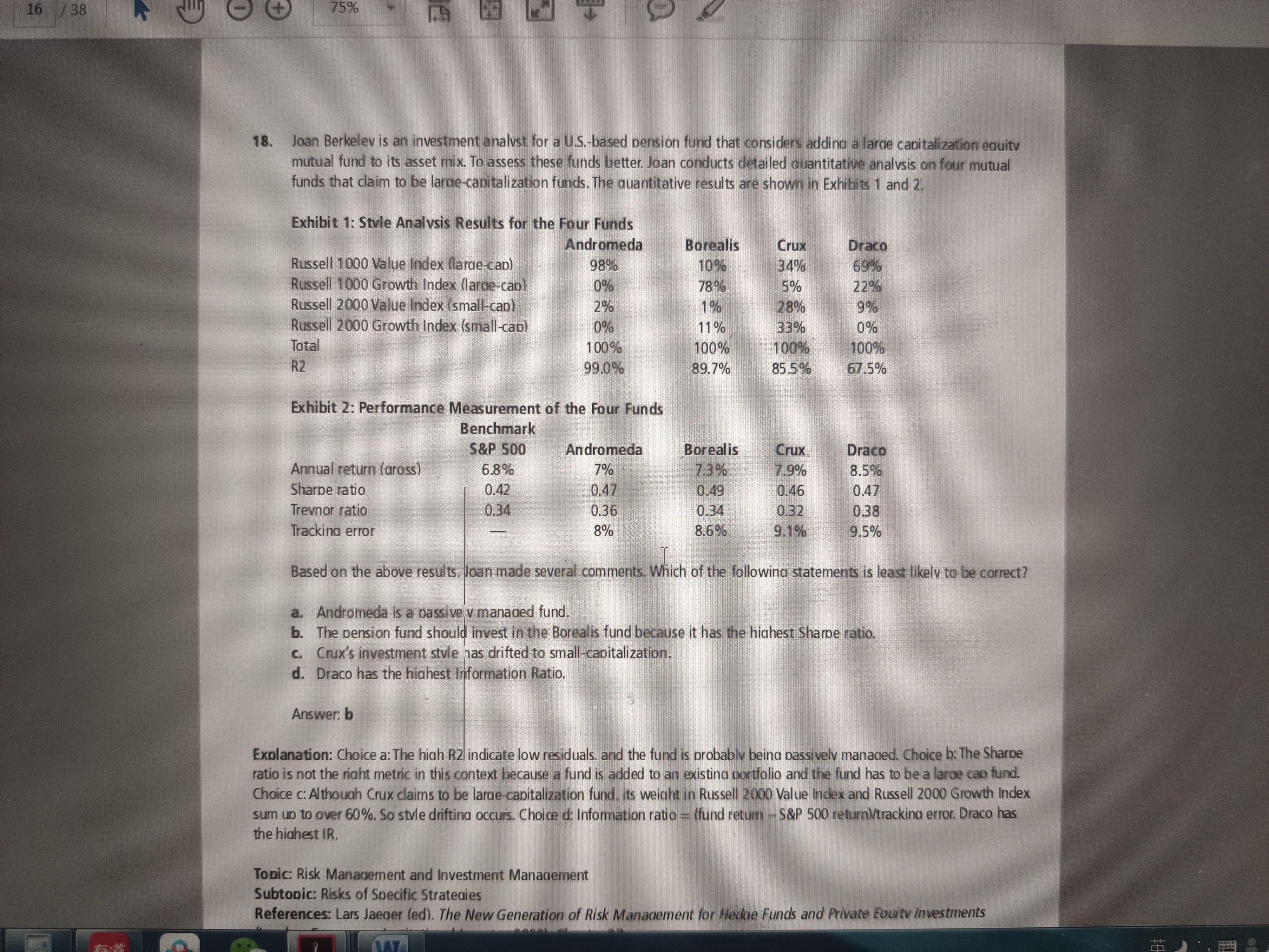 同学你好,对于评判基金经理的业绩时,主要参考的是信息比率,而不是夏普比率。
