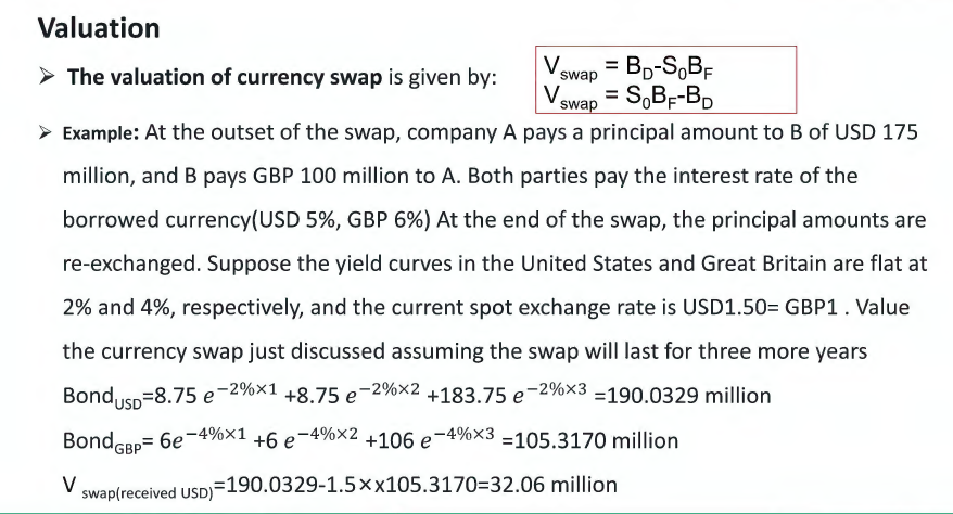 同学你好,货币互换在期初和期末是需要交换本金的,期间交换利息,最后计算互换价值的时候,因为去期初的本金都是等价交换,所以不用再考虑,只用考虑后面期间的利息和最后一期的本金和利息折现即可。