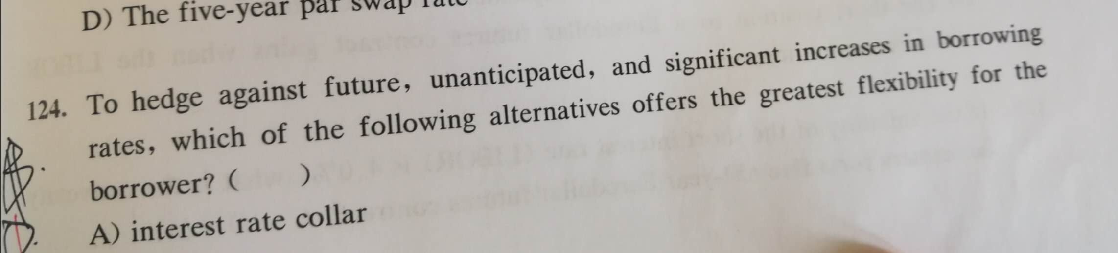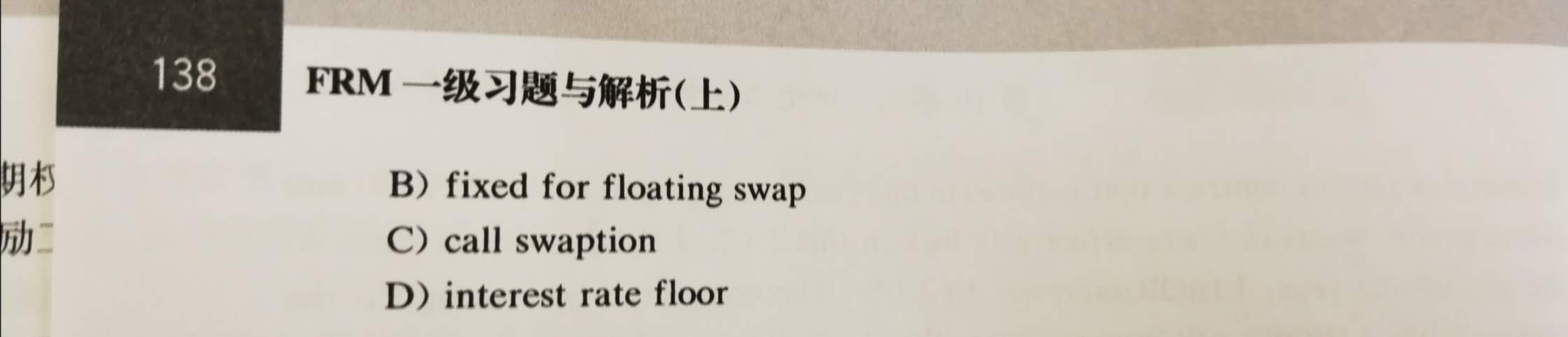 同学你好,题干背景是为了对冲利率上涨的风险而采取的对冲措施,其余三项的对冲方法都相对复杂,操作成本较高,互换简单有效,成本低。