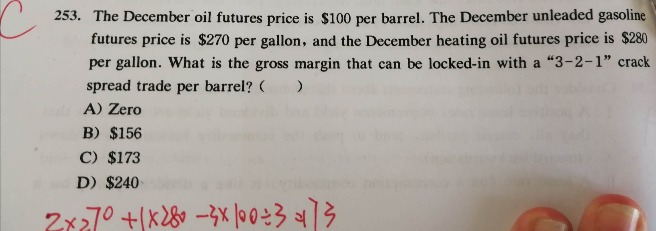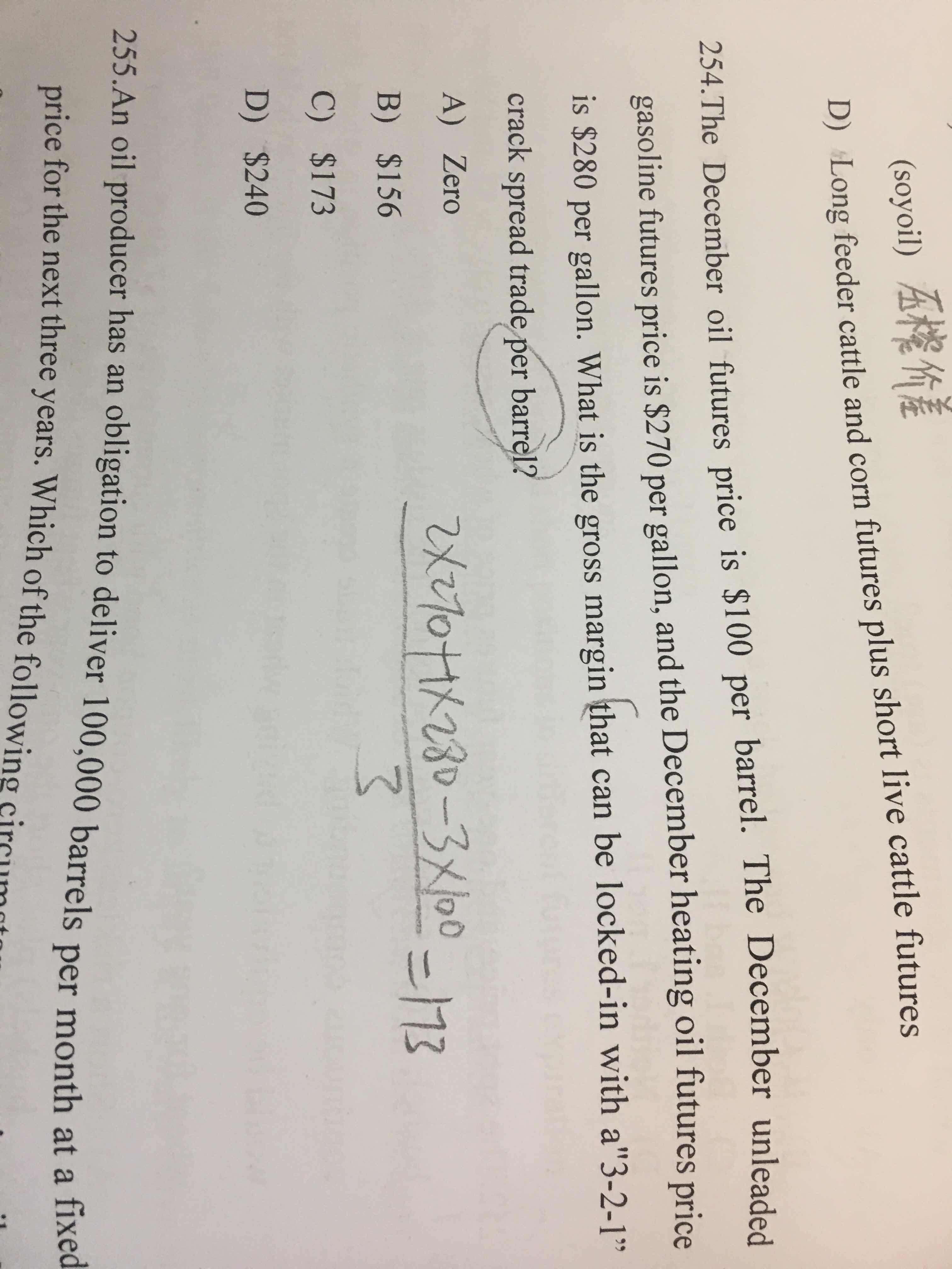同学你好,这道题考察的是大宗商品中关于裂解价差的知识点,3-2-1意思是3加仑的原油可以提炼出2加仑的汽油和1加仑的燃油,3-2-1不是权重而是份数。除以3是在最后除的,参考图片