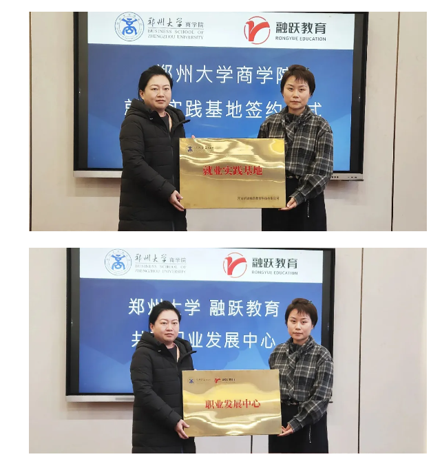 随后,举行签约挂牌仪式。郑州大学商学院党委副书记、纪委书记王传芳与融跃教育河南省分公司总经理洪颖慧共同见证,融跃教育郑州大学商学院就业实践基地、职业发展中心正式成立,为校企协同育人搭建起具象化、常态化的合作平台,彰显了双方携手共赢、深耕财经教育的坚定决心。