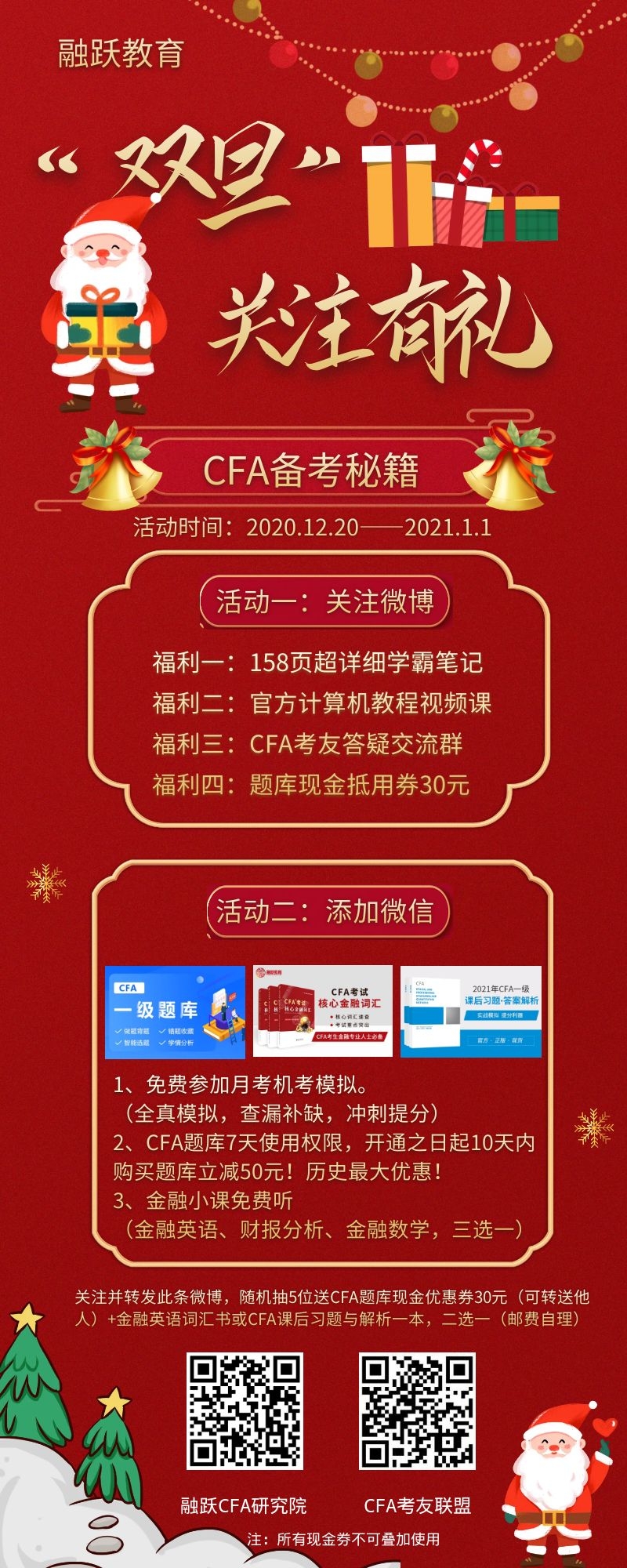 双旦礼遇季,关注CFA微博,资料+课程,备考秘籍都在这里!