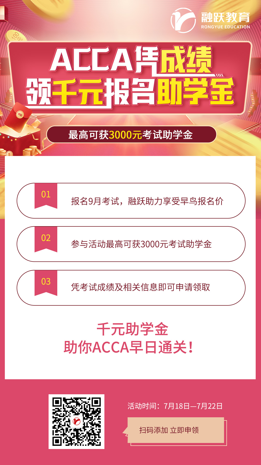 融跃ACCA凭成绩领取最高3000元报名助学金!
